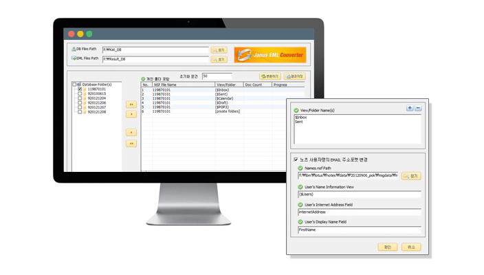 주요 기능 : 노츠주소(CN=홍길동/OU=I00001/O=Korea)의 email 주소(hong@xxx.com)변환, 도미노 폴더구조를